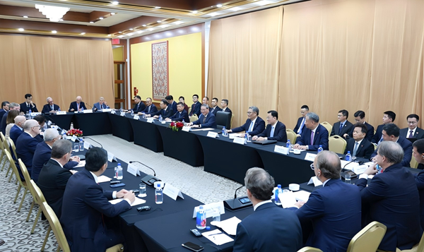 李強(qiáng)指出,中國有信心有能力保持經(jīng)濟(jì)穩(wěn)定健康發(fā)展,為包括美國企業(yè)在內(nèi)的各國企業(yè)創(chuàng)造更多機(jī)遇。無論外部環(huán)境如何變化,中國都將竭盡所能為外資企業(yè)發(fā)展提供更多確定性。一是中國將始終秉持建設(shè)性和負(fù)責(zé)任態(tài)度,同美方在平等、尊重、互惠的基礎(chǔ)上,共同促進(jìn)中美經(jīng)貿(mào)關(guān)系企穩(wěn)向好。二是中國將始終聚焦發(fā)展,推動自身經(jīng)濟(jì)穩(wěn)健增長。中國經(jīng)濟(jì)有獨特的穩(wěn)定運(yùn)行機(jī)制,市場潛力加速釋放、創(chuàng)新動力持續(xù)迸發(fā)、經(jīng)濟(jì)活力不斷增強(qiáng),這對企業(yè)意味著巨大的可預(yù)期的發(fā)展機(jī)遇。三是中國將始終信守承諾,堅定不移擴(kuò)大對外開放,持續(xù)放寬準(zhǔn)入、擴(kuò)大進(jìn)口,積極回應(yīng)外資企業(yè)關(guān)切,幫助解決實際困難,讓各國企業(yè)在中國安心經(jīng)營發(fā)展。
