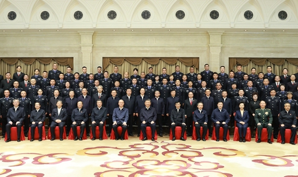 9月23日下午,中共中央總書(shū)記、國(guó)家主席、中央軍委主席習(xí)近平在烏魯木齊親切接見(jiàn)新疆維吾爾自治區(qū)政法干警代表,并同大家合影留念。新華社記者 丁林 攝
