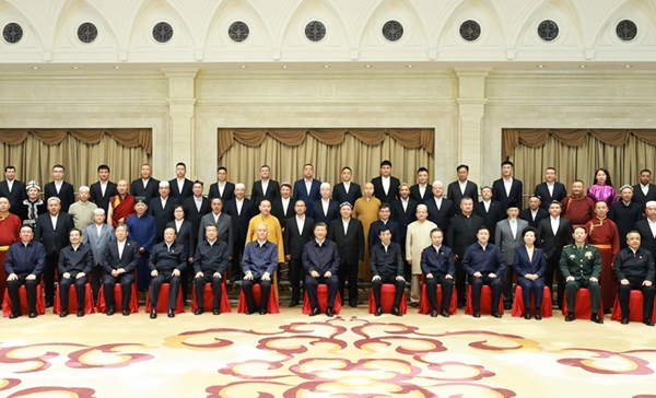 9月23日下午,中共中央總書(shū)記、國(guó)家主席、中央軍委主席習(xí)近平在烏魯木齊親切接見(jiàn)新疆維吾爾自治區(qū)宗教界愛(ài)國(guó)人士和基層宗教工作干部代表,并同大家合影留念。新華社記者 丁林 攝